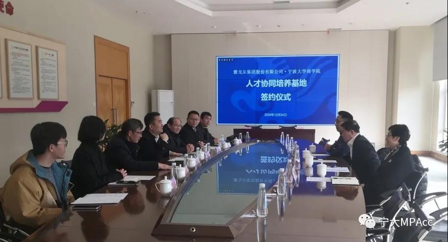 和雅戈尔集团股份有限公司共同举行了“人才协同培养基地”签约仪式。雅戈尔集团常务副总经理胡纲高、雅戈尔集团财务总经理吴幼光、雅戈尔集团服控财务总经理杨和建、雅戈尔集团人力资源总监陆占武、h图书馆