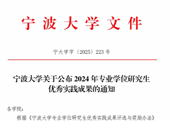 公布2024年专业学位研究生优秀实践成果评选结果(宁大学字〔2025〕223号),h图书馆