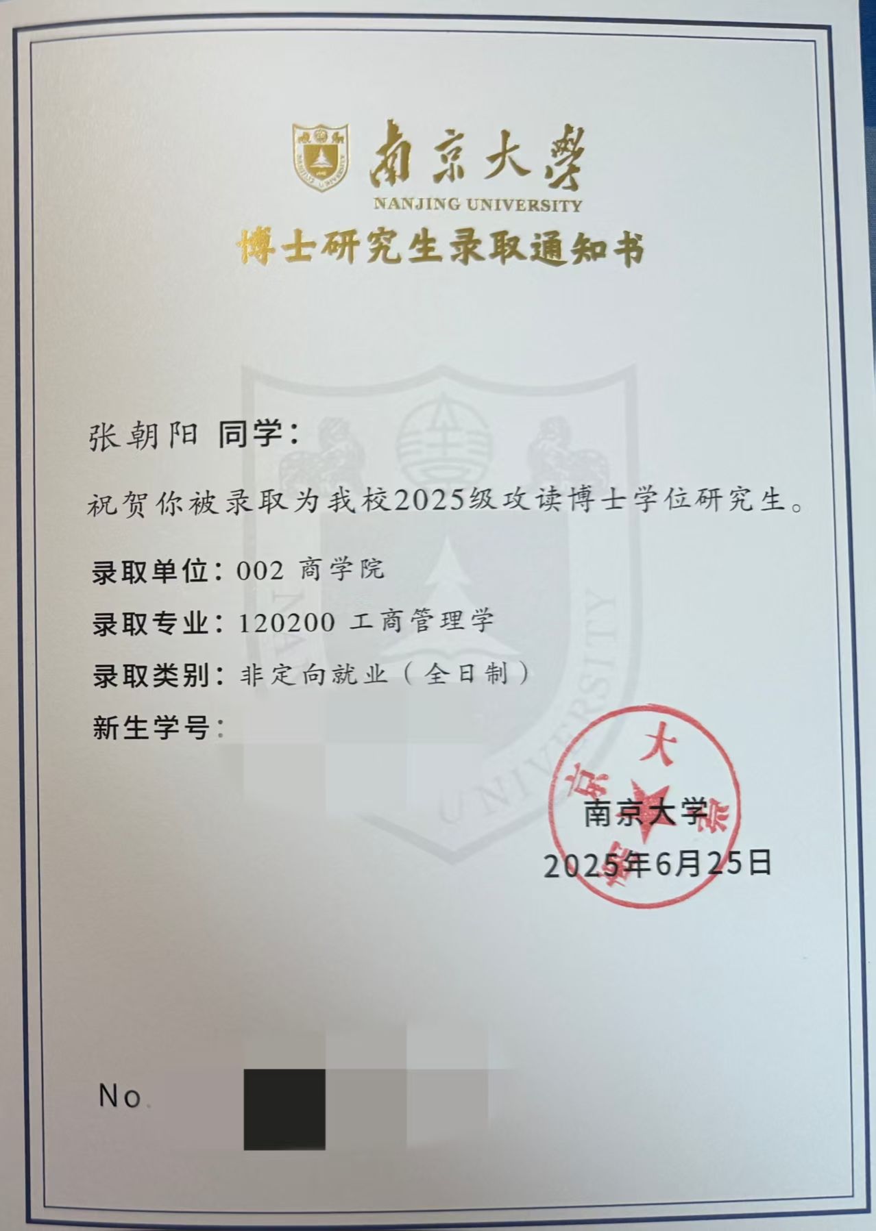 近期,我校2022级MIB毕业生陆续传来升学捷报,张朝阳、方嘉彬、诸鑫哲、鲍子文、职梦露等5名同学分别被多所高校录取为博士研究生,展现了MIB学子扎实的学术素养与不懈的进取精神。