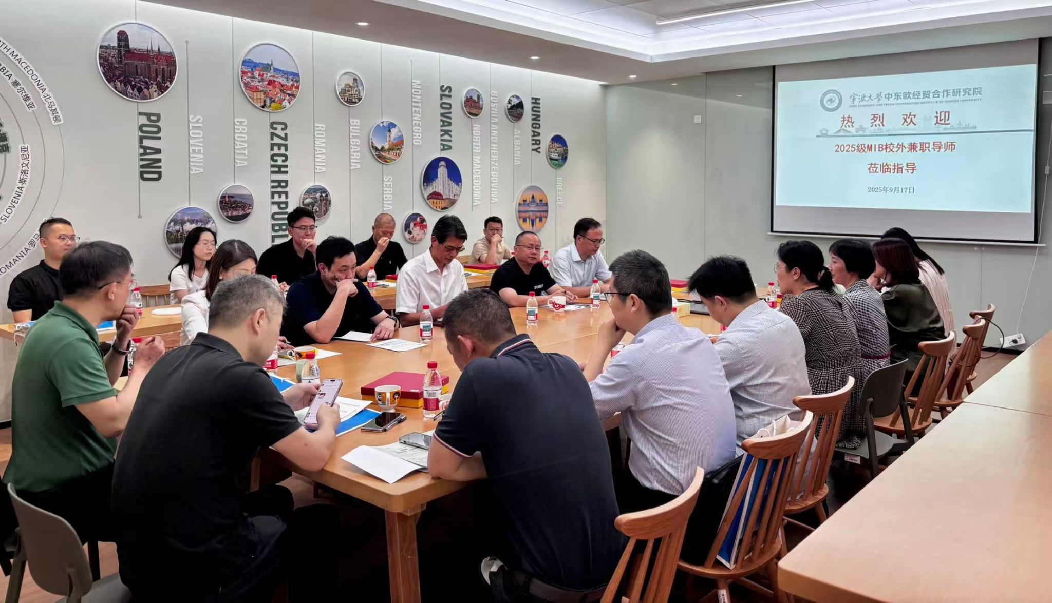 中东欧经贸合作研究院副院长杨丹萍老师、MIB教育中心执行主任叶劲松老师以及19位校外导师共同出席了本次活动。