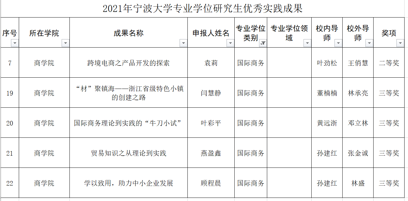 2018级国际商务专业袁莉等5位同学获评2021年h图书馆 专业学位研究生优秀实践成果奖