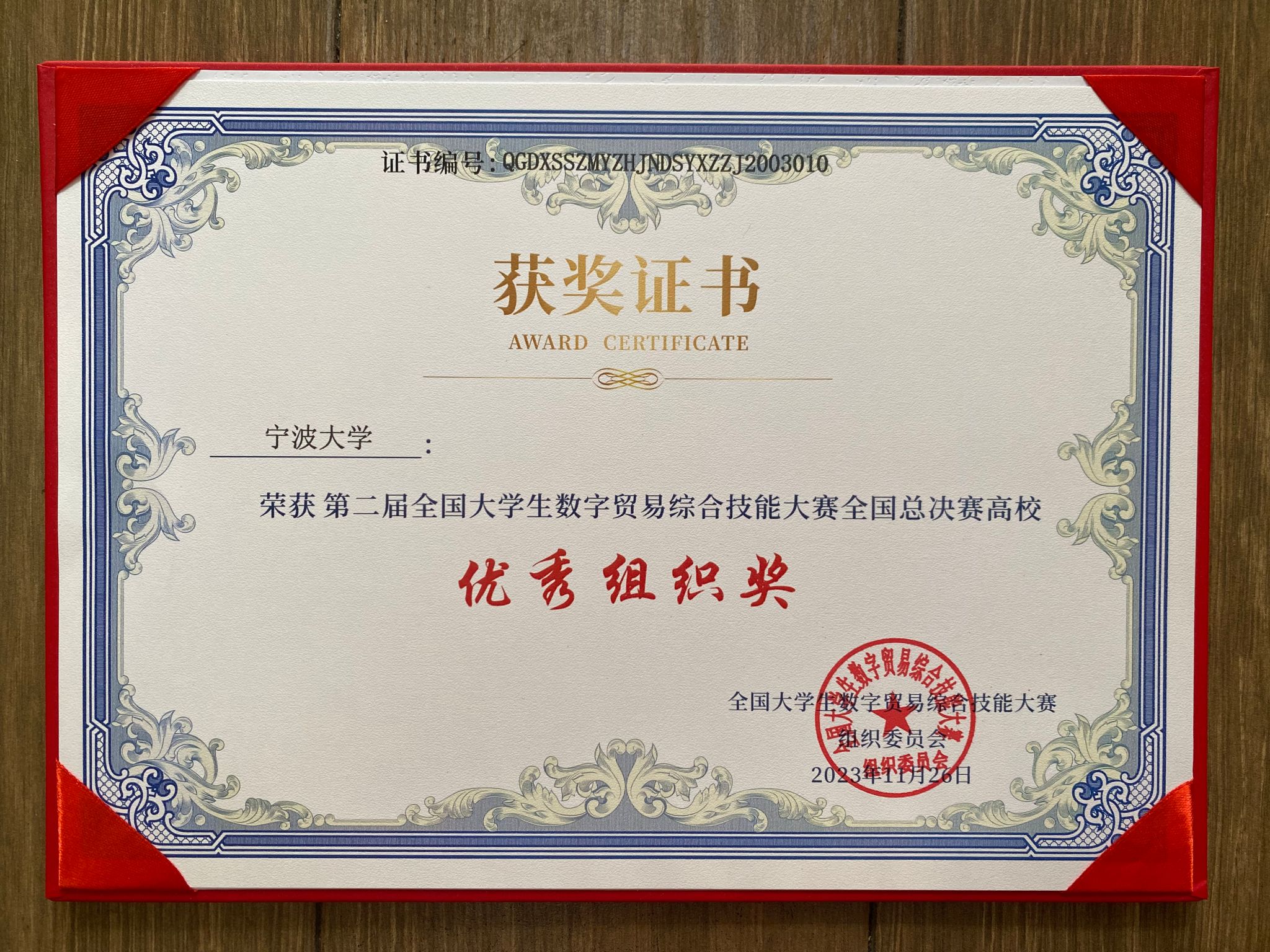 也被授予优秀组织奖。我校旨在培养具备全面的国际商务视野和国际化经营管理能力的人才,使其能够灵活应对全球商务环境和市场的变化。此次全国大学生数字贸易综合技能大赛促使MIB学子在实践中把握市场,与真实的客户面对面交谈,全英文的直播方式提升了其跨文化交流的能力,这对于今后的跨国商务合作和职业盛业发展都将带来重要帮助。
