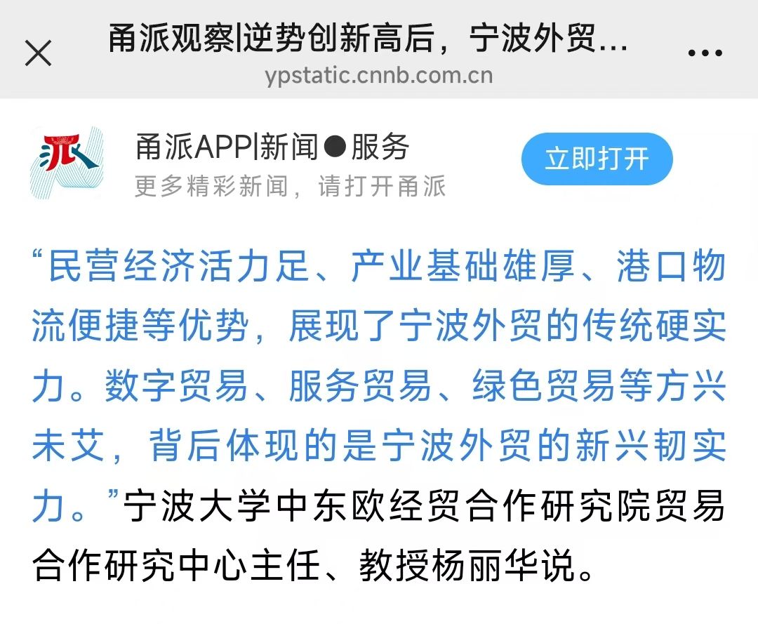 媒体发声 | 我校MIB学位点负责人杨丽华教授在甬派APP新闻平台为宁波外贸发展建言