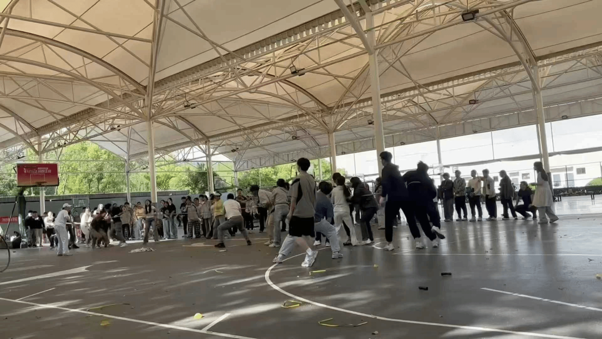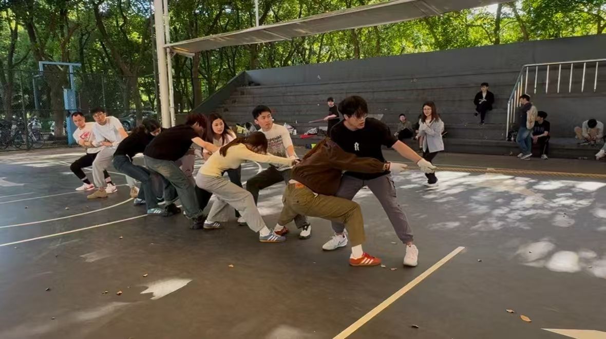 最激动人心的当属拔河比赛。由2024级MIB中10名同学组成的代表队,与其他同学展开激烈角逐。比赛中,队员们紧握长绳,脚步稳扎,随着口号声齐力后拉,脸涨得通红却丝毫不放松。场下啦啦队热情高涨,加油声此起彼伏,将现场气氛推向高潮。