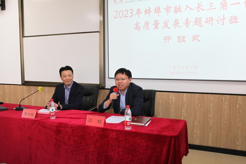 协理副院长、党组成员朱一鸿出席,蚌埠市发改委副主任刘锐表示,2021年 12 月,为推动皖北地区加快发展,缩小长三角区域内发展差距,国家发展改革委印发《沪苏浙城市结对合作帮扶皖北城市实施方案》,明确宁波市结对合作帮扶蚌埠市,这对于缩小长三角区域内发展差距、实现长三角更高质量一体化发展具有重要意义。国家方案印发以来,蚌埠、宁波两市积极对接、加强联系,结对合作帮扶工作已经取得了一定成果,合作广度不断扩宽、程度不断深化。开展本次蚌埠市融入长三角一体化高质量发展专题研讨班,是进一步推进甬蚌结对合作工作的具体举措,也是提高两市从事长三角一体化工作相关人员知识储备、增强本领,谋划明年重点工作的必要手段。