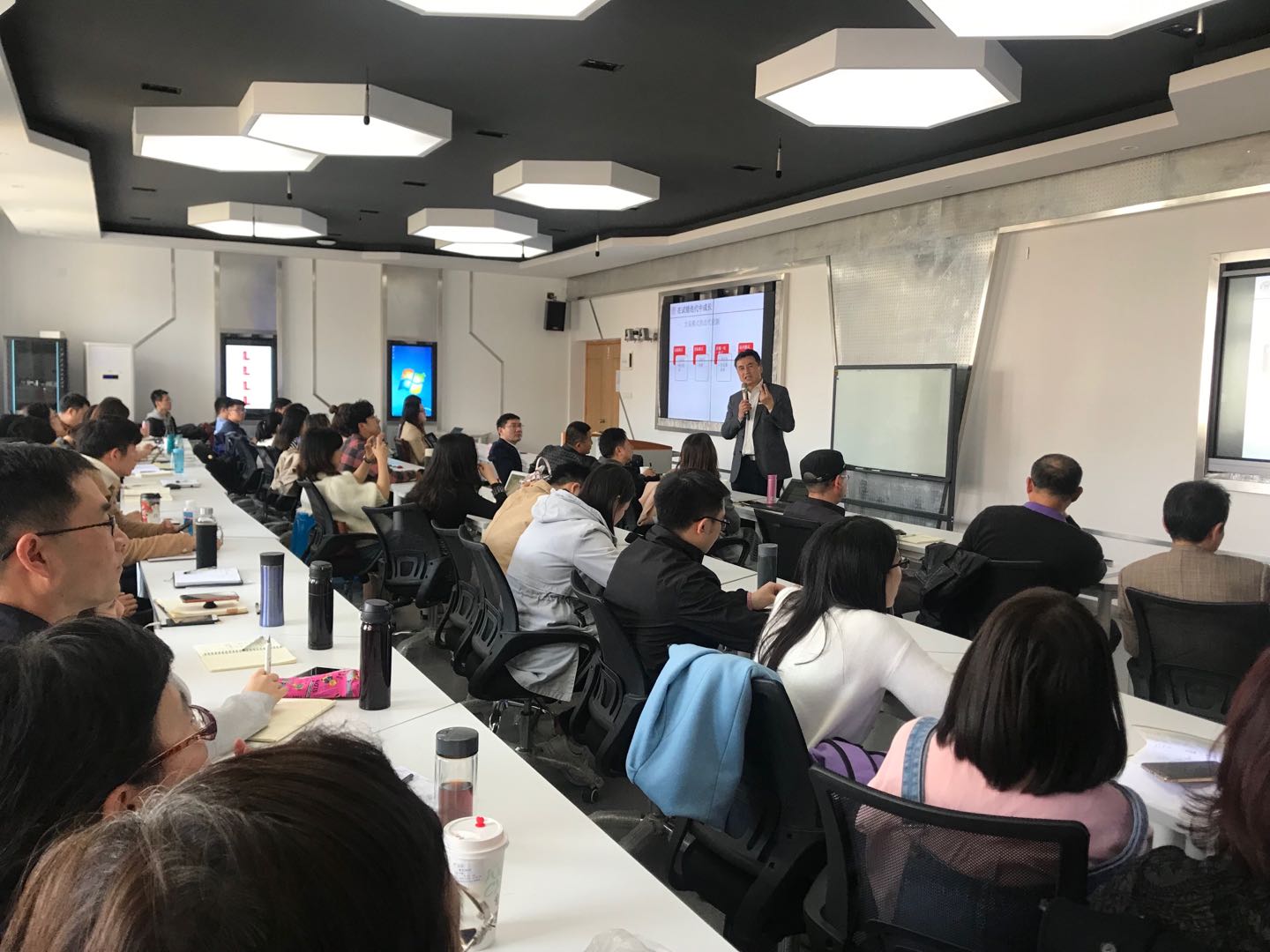 聘任仪式结束后,毛基业教授为h图书馆 师生举行了题为《服务众包平台的实践与理论研究:以猪八戒网为例》的学术讲座。在讲座中,毛教授运用猪八戒网的研究案例,从案例选择、理论构建、案例解析、研究贡献等方面与参会师生分享经验与体会。学术讲座结束后,毛基业教授与参会的青年教师就科研工作中的困惑和感受进行交流。会议讨论热烈,学术气氛浓郁。