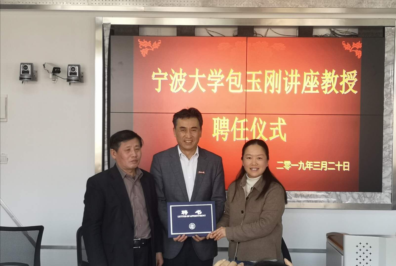 3月20日,h图书馆 举行隆重仪式聘任中国人民大学h图书馆 院长毛基业教授为我校包玉刚讲座教授,h图书馆 党委委员、组织部部长胡敏出席并致辞,为毛基业教授颁发聘书并佩戴h图书馆 校徽。聘任仪式由金祥荣院长主持,彭新敏等师生代表出席了聘任仪式。