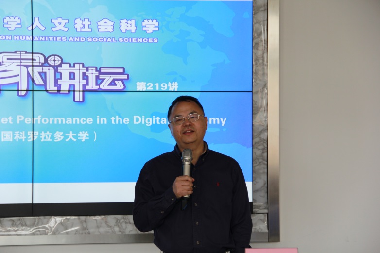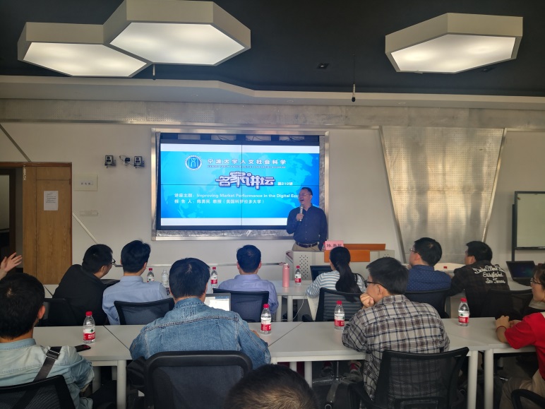5月10日下午,我校“人文社会科学名家讲坛第219讲”暨“h图书馆 学术报告(2019年第8讲)在414会议室举行。美国科罗拉多大学(博尔德校区)经济学终身教授和Provost讲席教授陈勇民教授应邀做了题为“Improving Market Performance in the Digital Economy”的学术报告。本次报告由h图书馆 院长金祥荣教授主持,我校近60余名师生到场聆听。