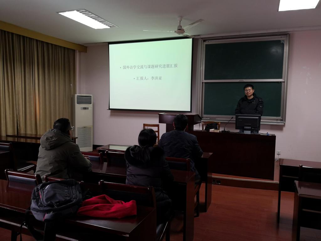 2019年1月11日上午,h图书馆 学术沙龙(2019年第2期)在11号楼418室如期举行。本期学术沙龙的主讲人是数量经济研究所的李洪亚博士,沙龙主题为“国外访学交流与课题研究进展汇报”。沙龙由数量经济研究所所长丁元耀教授主持,数量经济研究所的相关老师参加了此次学术活动。
