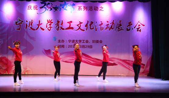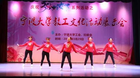 为倡导积极、健康、科学的健身理念,为我校女教工提供展示风采的舞台,3月29日下午,由校工会、校妇委会主办的庆“三八”系列活动之教工文化活动展示会在锦绣小剧场举行。h图书馆 分工会组织董璐、章舒怡、姚汶颖、戴宛遐、徐瑞(学生教练)等女教职工积极参与。