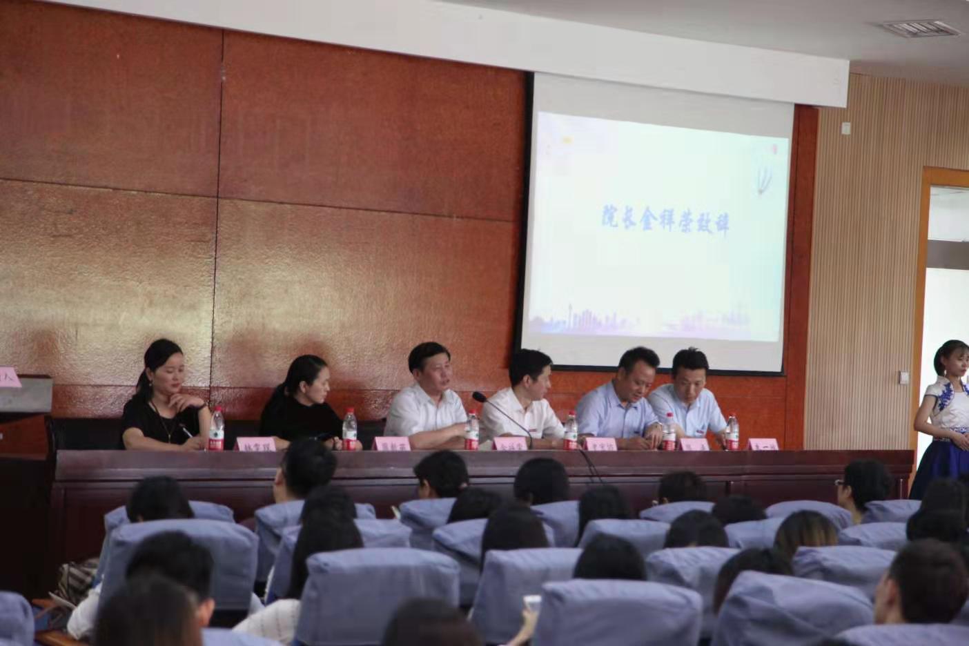 9月7日上午,h图书馆 2019级新生见面会暨专业硕士兼职导师聘职仪式在阳明学院315报告厅召开。h图书馆 院长金祥荣、院党委书记史宏协、副院长周新苗、副院长陈涛、协理副院长朱一鸿、各学位点负责人和系主任出席,会议由党委副书记韩雯琛主持。