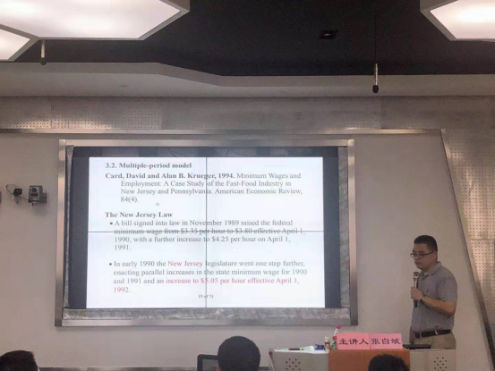 本次研修班共分5个专题进行,由h图书馆 副院长周新苗教授主持。第一讲为浙江大学经济学院金融学系罗德明教授的“经济与金融的经验研究方法”专题,第二讲为浙江大学经济学院经济系主任朱希伟教授的“新经济地理学前沿与中国的应用”专题,第三讲为浙江大学经济学院叶建亮副教授的“政治经济学前沿与中国的应用”专题,第四讲为浙江大学经济学院副院长潘士远教授的“中国经济问题与经济学模型构建”专题,第五讲为浙江大学经济学院经济学系副主任张自斌副教授的“政策评估模型在资源环境经济学领域的应用”专题。