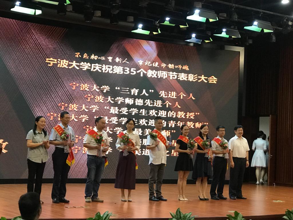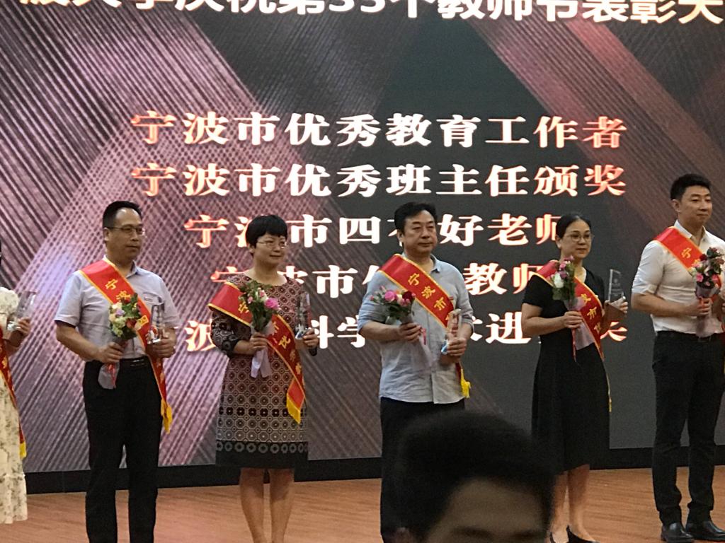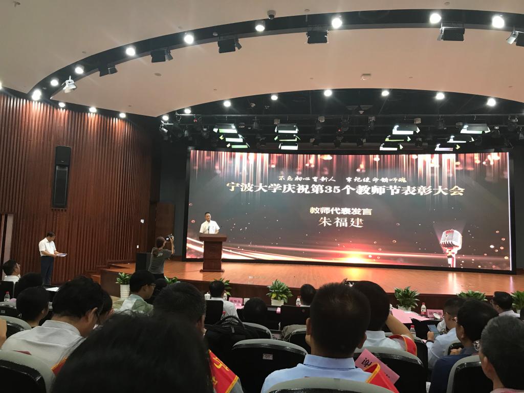 在表彰会上,h图书馆 共有五名教师获得表彰,分别是邱妘获得浙江省高校优秀教师,周新苗获得h图书馆 最受欢迎教授,金安获得宁波市优秀思政课程教师,黄惠琴获得宁波市优秀教师,朱福建获得h图书馆 师德先进个人。表彰会上朱福建老师还代表全体教师做主题为《桃李不言 下自成蹊》的发言。