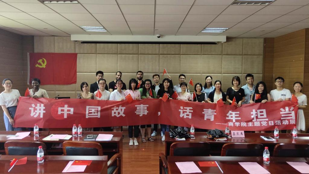 本次活动分为三个议程,第一个议程奏国歌,全体师生齐唱国歌。第二个议程6位党员代表上台讲中国故事。徐晴讲支教故事,献微小力量,用自己的双手送去温暖;方露曦讲家乡故事,述家乡新貌,以自己的力量担起青年责任;蒋子恒和姚昀曦讲海外故事,传中国精神,用自己的行为树立中国形象;留学生穆函讲爱华故事,扬传统文化,用自己的热情拥抱世界;何靓讲追梦故事,感奉献精神,把小我融入大我。