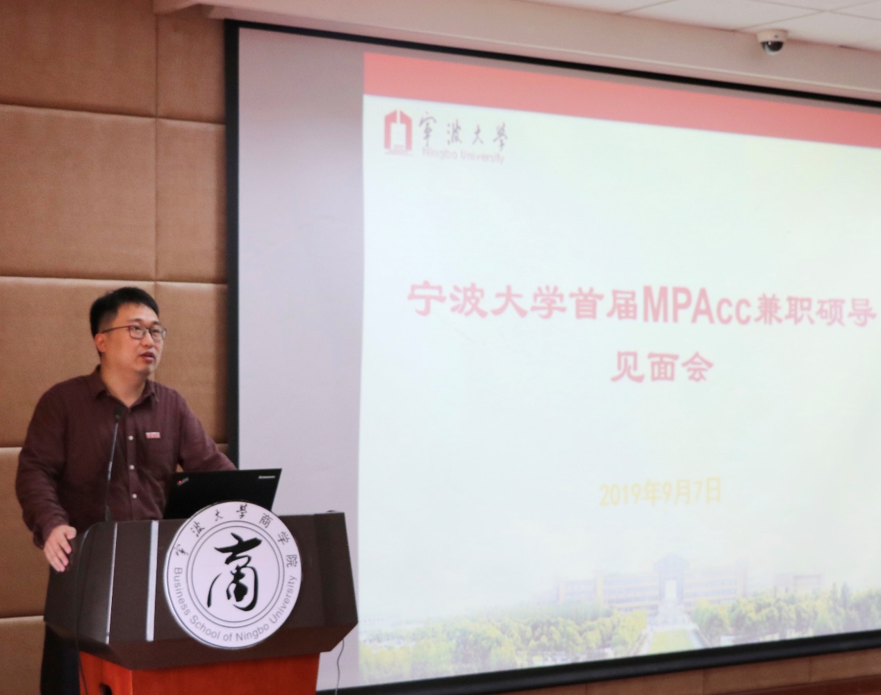 2019年9月7日,h图书馆 首届会计专硕(MPAcc)兼职硕导见面会于h图书馆 顺利召开。出席会议的有中国会计学会理事、中国会计学会会计教育专业委员会委员、h图书馆 会计国际发展中心研究主任、h图书馆 会计专硕学位点主任邱妘教授、h图书馆 会计专硕学位点执行主任陈翼然博士、宁波世明会计师事务所有限公司董事长李钢、舜宇光学科技(集团)有限公司总裁孙泱、香溢融通控股集团股份有限公司副总经理沈成德、慈溪农村商业银行副行长戚建明、雅戈尔集团股份有限公司副总经理刘新宇,以及2019级会计专硕全体学生。会议由陈翼然老师主持。