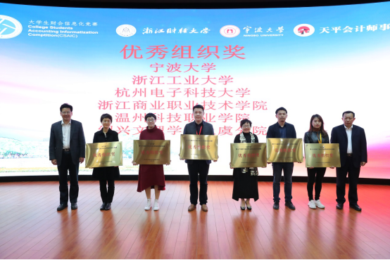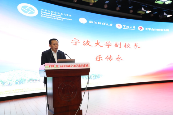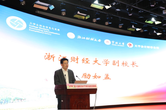 本届财会信息化竞赛颁奖典礼由h图书馆 协理副院长朱一鸿主持,浙江财经大学副校长励如孟、h图书馆 副校长乐传永、台州大学副校长李钧敏、浙江天平会计师事务所董事长余俊仙等出席颁奖典礼并致辞。