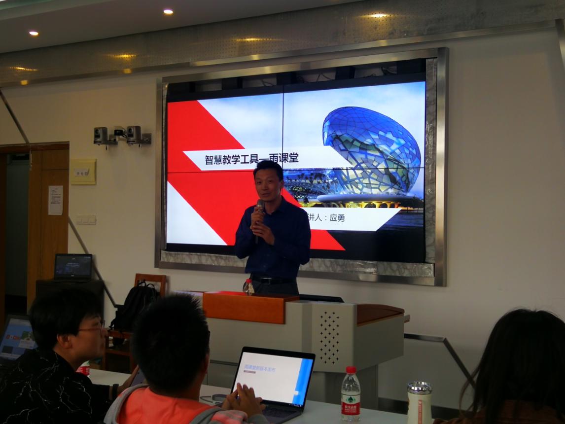为帮助广大教师利用现代智慧教学工具提升课堂教学效果,积极探索在线课程与传统课堂的结合模式,进行“互联网+课堂”的教学实践,推动h图书馆 教学改革的开展,10月16日下午13点30分,学院特邀清华大学学堂在线培训讲师应勇来h图书馆 ,在11-414为h图书馆 教师进行了“雨课堂”智慧教学工具应用专题培训。