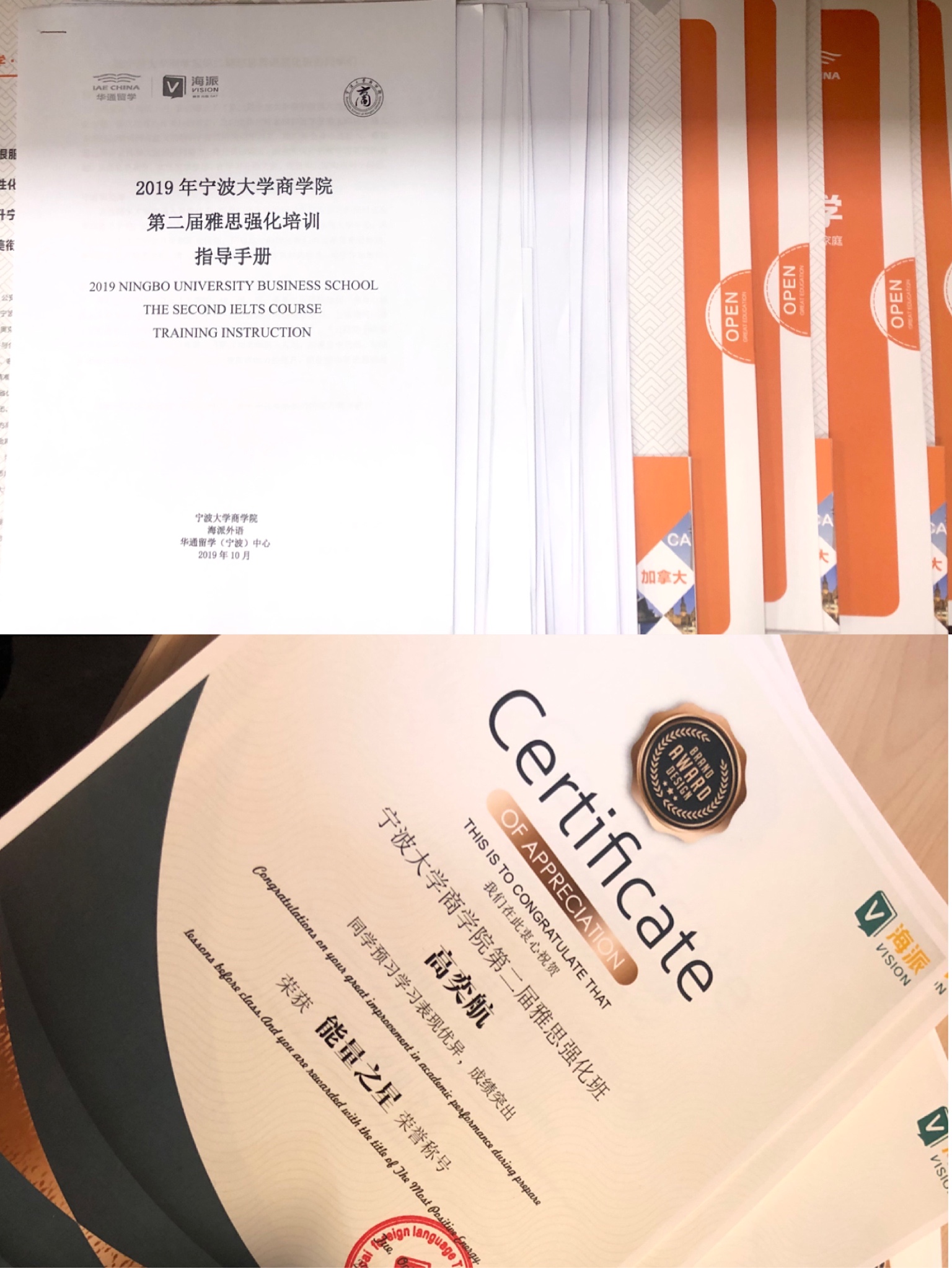 首先,党委副书记韩雯琛鼓励大家对标浙大经济学院,珍惜在校期间能全身心学习知识的机会,志存高远,积极进取。同时表示学院搭建了优质平台,鼓励同学们深造,提高自身竞争力,在未来获得更高平台。然后,海派教育课程总监王虹介绍了培训班的课程设置,教室团队和教学分班,并为六位“能量之星”颁发奖状,重申了培训班培养目标。最后,工商金融团队留学生辅导员王逸娇分发了班级承诺书,表达了课程学习要求和雅思考试计划。