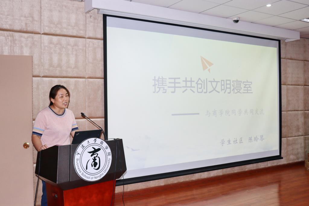 最后由学校社区管理中心思政科主任陈玲琴老师为同学们做主题讲座,陈老师从寝室文明建设的目标和意义入手,具体向同学们阐述了学校对改善寝室卫生状况的重点举措,特别是同学们最关心的每周寝室卫生检查的人员设置、具体操作流程、相关的考核方式。最后本部片区楼宇辅导员毛罕君老师针对h图书馆 社区大本营本部公寓的常见情况进行了案例分析,用图片展示的方法向同学讲解了相关处理办法,并对在场学生提出问题给予详细的解答。