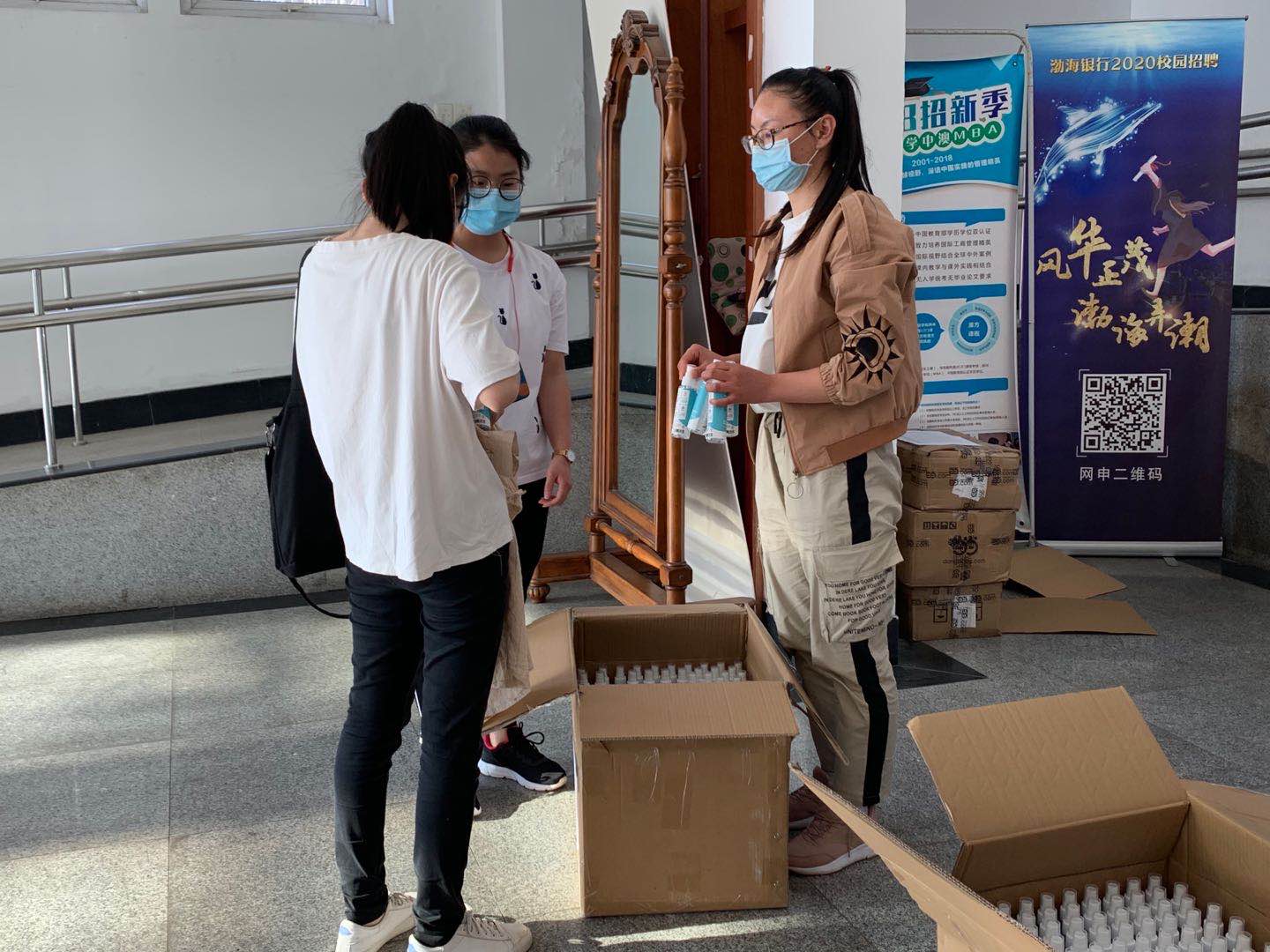 5月12日,h图书馆 以寝室为单位向同学发放酒精喷雾防疫物资,助力学院复学。该批酒精喷雾由h图书馆 2000级校友、宁波赛柯国际贸易有限公司总经理朱灵峰捐赠。