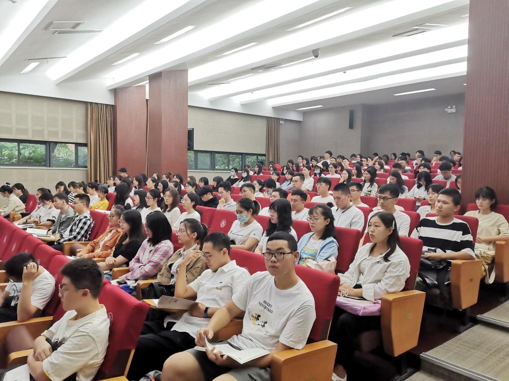 9月18日上午,h图书馆 2020级研究生新生班会在王明康楼一楼报告厅顺利召开。学院学科与研究生办主任朱淮泽,工商金融团队负责人周双双,辅导员朱文洁、陶含怡以及2020级全体研究生新生参加本次班会。