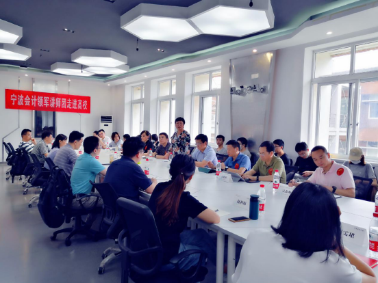 此后,宁波会计领军讲师团与h图书馆 会计系各位老师开始了友好的交流座谈环节。他们围绕大学生职业生涯规划课程设置、会计人才培养需求、企业和学生的关系、实习集训营构建等主题提出了自己的见解。