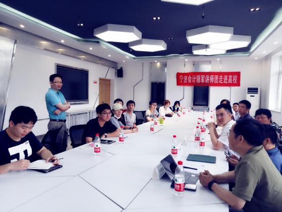 2020年6月3日下午,“宁波会计领军讲师团走进高校”活动在h图书馆 成功举行。商学院党委副书记韩雯琛、协理副院长朱一鸿及会计系师生与来自宁波市会计领军人才班的会计领军讲师团进行了深入交流。