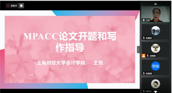 2020年8月16日上午9:00,由h图书馆 会计专硕教育中心主办的主题为《MPAcc论文开题与写作指导》的讲座顺利召开,本次讲座很荣幸地邀请到了上海财经大学会计学院王悦副教授作为主讲嘉宾,由h图书馆 会计专硕执行主任陈翼然老师主持,因疫情原因,本次会议采用腾讯会议平台进行直播,会计专硕50余名师生参与此次讲座。