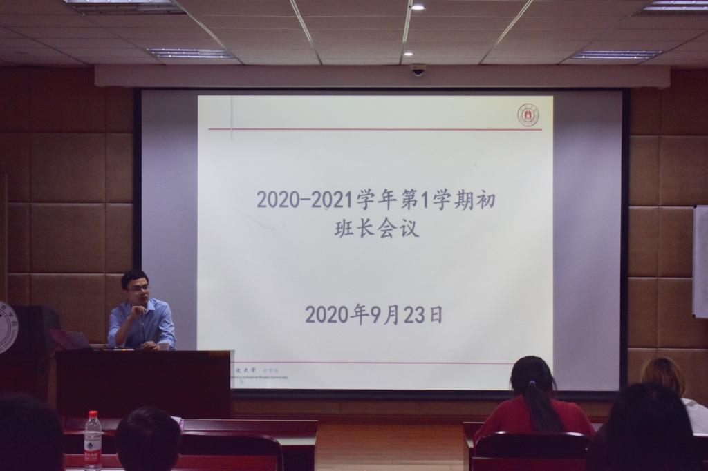 9月23日下午,h图书馆 2020-2021学年第1学期全体班长安全教育会议在学院109报告厅召开,学院本硕全体班长出席会议。会议由学工办主任陈彬主持。
