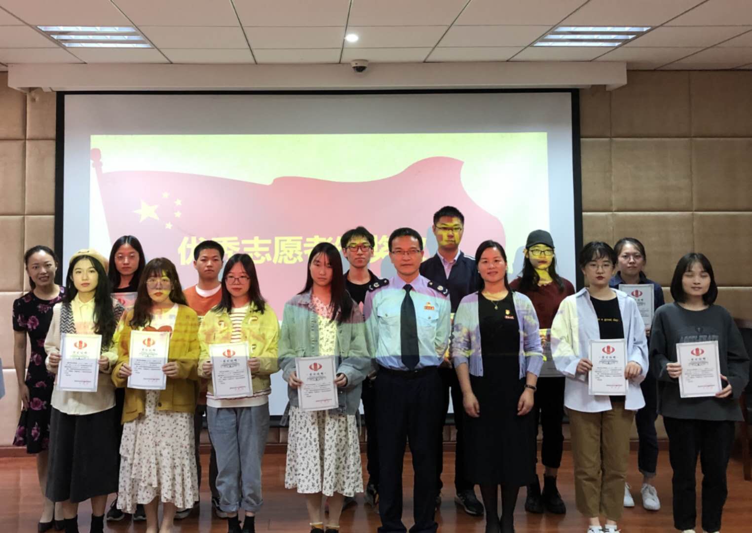 出征仪式上,首先由屠晓军致辞,他充分肯定了志愿服务大队近三年来工作成果,为接下来相关工作的进一步展开明确了方向。紧接着,税务局和h图书馆 领导老师共同为2019-2020学年税收志愿服务大队中的优秀志愿者代表进行颁奖表彰,并由优秀志愿者王艳琦同学代表全体志愿者发言。随后,骆驼税务所陈翘楚为同学们进行了一次深入浅出的志愿服务培训与动员。最后,由韩雯琛进行讲话总结,期望同学们能充分利用h图书馆 同税务局共建的税校合作实践基地平台,学以致用,不断壮大税收志愿青年力量,在税务志愿活动中收获成长,彰显我校青年志愿者良好精神风貌与青春风采。