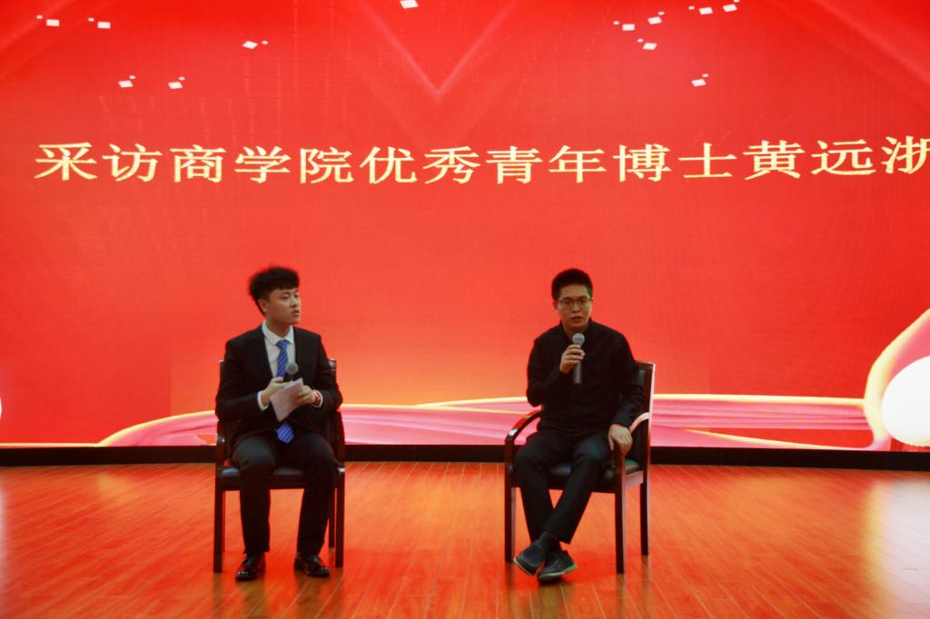 会上,还对本硕博都在宁大就读目前在h图书馆 做老师的年轻博士黄远浙老师进行了访谈,在访谈中,黄老师和大家分享了为什么要考研、确立考研目标后如何选择目标学校等问题,并鼓励同学们积极报考本校。