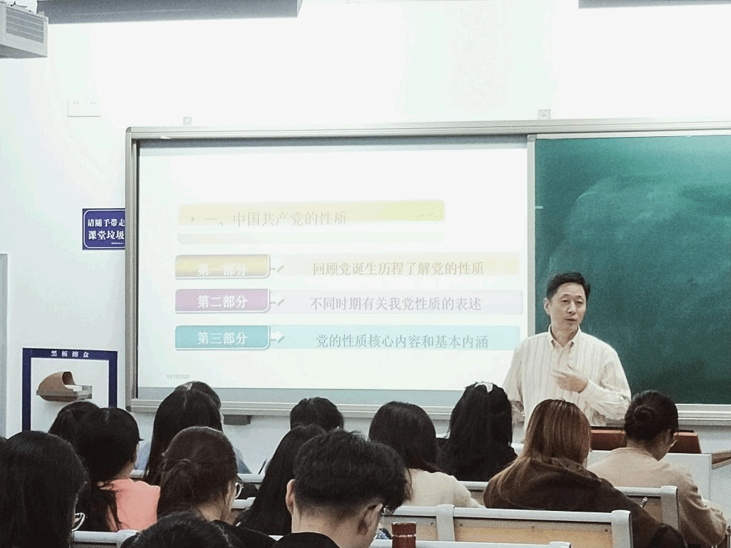党课中,史书记分别从三个方面介绍了党的性质和指导思想。他回顾了中国共产党的诞生历程,并结合经典案例,介绍了十九大党章对党的行动指南的描述、中国特色社会主义发展历史的新方位以及习近平新时代中国特色社会主义思想的伟大意义,使全体学员对党的性质和指导思想的核心与内涵有了更加深刻的认识与理解。课上,史书记勉励学员们不忘初心,牢记使命,务实进取,争做新时代中国特色社会主义事业的建设者。通过此次党课,在座的每一位学员都深受鼓舞,激发了自身爱国爱党的情怀,也坚定了向党组织积极靠拢的决心。