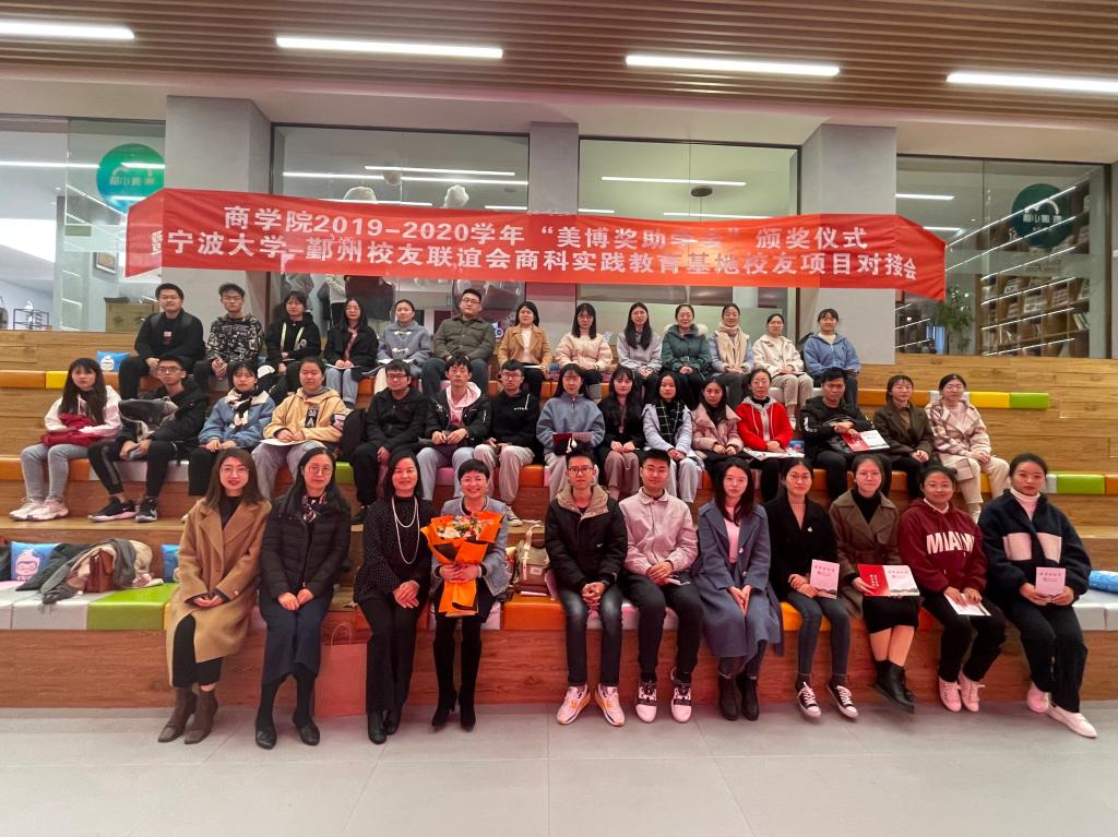 2020年12月9日下午,h图书馆 在云创1986青年小镇路演大厅顺利举行2019-2020学年“美博奖助学金”颁奖仪式暨h图书馆 -鄞州校友联谊会商科实践教育基地校友项目对接会。本次大会由学院学生董振宇主持。