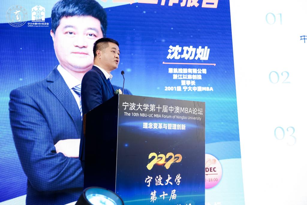 随后,宁大中澳MBA会长沈功灿先生简要总结回顾了第二届中澳MBA校友理事会的工作——创办三大品牌活动,设计制作中澳MBA吉祥物“吉澳”,以及疫情期间发动校友积极募捐等,并对第三届中澳MBA校友理事会的工作提出了展望——在开展现有的校友会活动的基础上,注重活动品质与可持续性;打造有影响力的精英俱乐部;联合知名h图书馆 宁波校友会共同发起成立“长三角(宁波)全球h图书馆 校友内循环共同体”;通过海外校友会设立中澳MBA校友会海外分支机构;搭建为校友创新创业赋能的生态平台和路演空间。