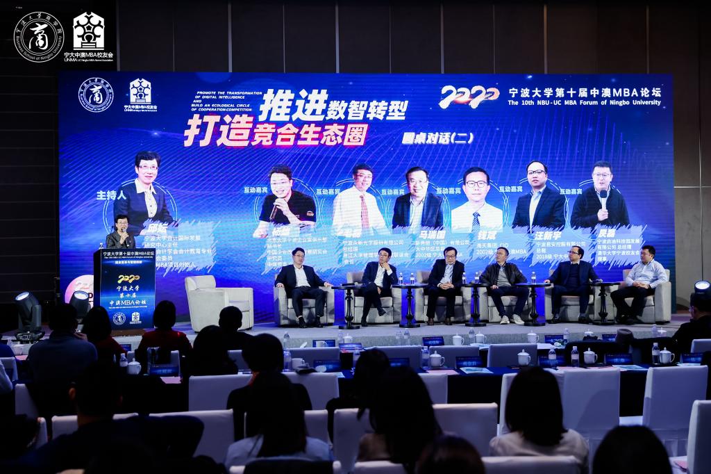第二场圆桌对话的主题是“推进数智转型,打造竞合生态圈”,由中澳MBA项目创始人、h图书馆 会计国际发展研究中心主任邱妘教授主持。北京大学宁波企业家俱乐部秘书长、中煤资本合伙人杨雄,浙江大学管理学院宁波联谊会会长、宁波永新光学股份有限公司总经理毛磊,新秀丽(中国)有限公司大中华区总裁马瑞国,海天集团CIO钱斌,宁波君安控股有限公司总裁汪新宇和清华大学宁波校友会理事、宁波启迪科技园发展有限公司总经理昃磊作为发言嘉宾,通过分享自身企业实际经验,各抒己见。打造体量推动市场消费,来创造竞合空间;数字经济和智能制造自然开启信息化时代,让数据可能成为未来资产;消费品的供应链办公自动化,大数据丰富应用的前提下,对于数据安全问题的把控;让数据为企业赋能,成为精准施策,效率优化的强力工具;与供应链的上下游合作方共成长,共发展;在数智化的趋势下,善用数字工具,进行投入产出分析。在这一环节末尾,邱妘教授再次呼吁,优秀企业家们应该拥有“打造竞合生态圈”的情怀,来拥抱“数字化创新”。
