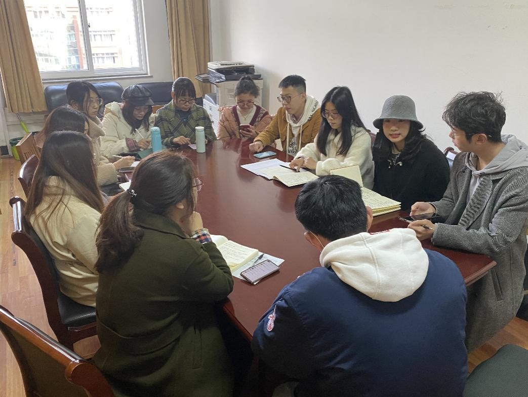3月2日,h图书馆 研究生会在11号楼408室举办新学期第一次干部会议,研究生会秘书长朱文洁、主席团及部门主要负责人参加本次会议。