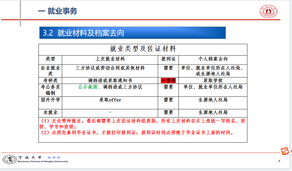 首先,龚昆朋介绍了就业全流程的关键时间点和就业材料的具体内容。然后,龚昆朋就不同去向的毕业生所需的就业材料,包括三方协议、劳动合同、调档函等进行了重点讲解。之后,龚昆朋就毕业证、学位证、报到证、户口迁移证、离校循环单和学生档案的相关问题进行了详细地讲解。最后,龚昆朋一一解答了参会同学提出的就业疑问。