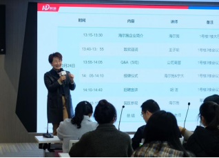 在海尔施公司欢迎仪式上,公司副总经理王子瑜女士发表了热情洋溢的欢迎辞,介绍了公司的经营理念和h图书馆,并且耐心解答同学们的问题,并提到“危机危机,有危才有机”,令同学们受益匪浅。