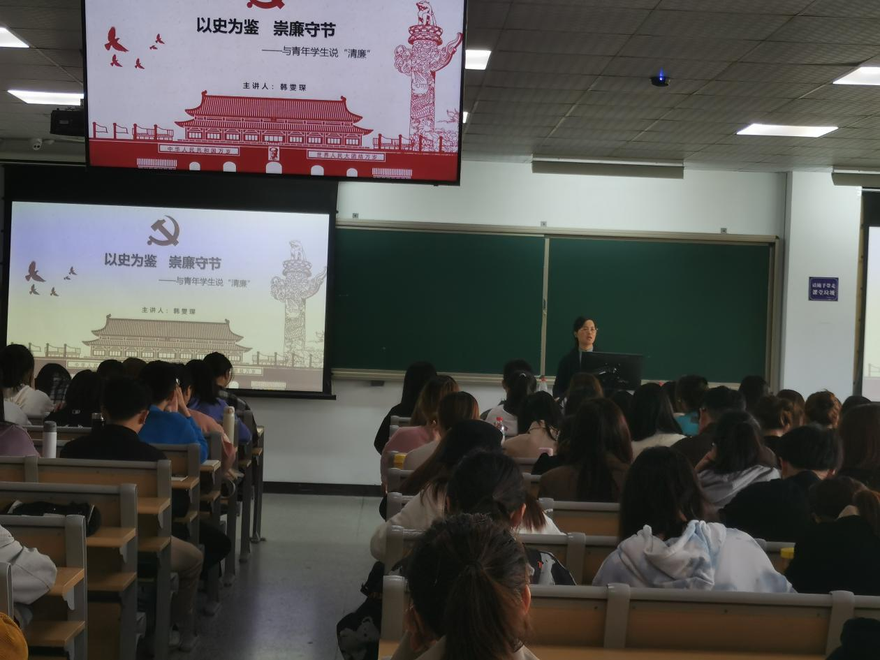 4月21日下午,h图书馆 成功举办了“以史为鉴 崇廉守洁——与青年学生说“清廉””第45期廉洁教育课。h图书馆 126名发展对象参与,院党委副书记、纪委书记韩雯琛担任主讲人。