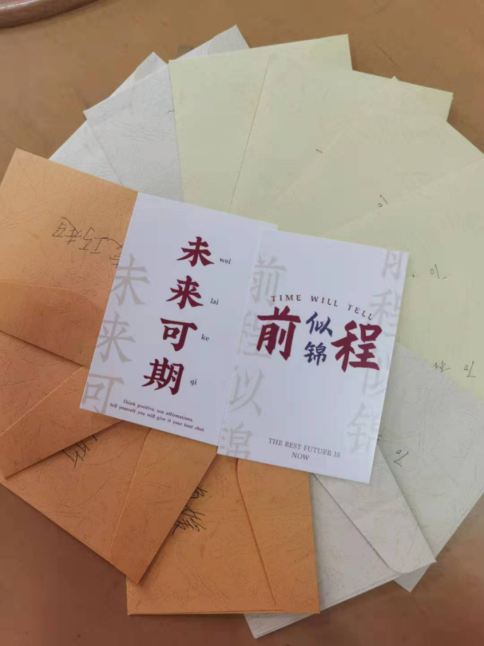 活动中,先由研究生辅导员朱文洁向毕业生班级分发明信片。随后,各班在班级内开展明信片交换活动,同学们在明信片上写下毕业寄语,并赠予班内其他同学,表达自己的美好祝愿。