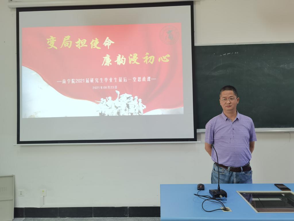 初秋相遇,盛夏离别,6月23日下午h图书馆 于叶耀珍楼202教室举办了“廉韵浸初心,变局担使命”2021届研究生毕业生最后一堂思政课活动,h图书馆 纪委委员朱福建受邀出席,2021届研究生毕业生参与。本次活动由h图书馆 研究生辅导员朱文洁主持。