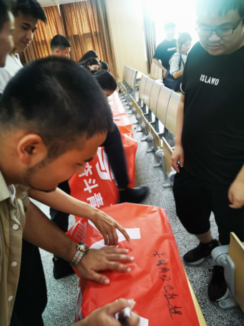 活动中,董璐首先进行了资助政策以及助学贷款的知识宣讲,强调了诚信的意义以及重要性。随后,董璐就大学生失信案例与同学们进行了分享交流,内容涵盖学习诚信、生活诚信、网络诚信以及就业诚信。最后,同学们进行了“以青春之名 书写诚信人生”倡议签名,在发出“诚信做人”倡议的同时,也郑重许下对于诚信的承诺。