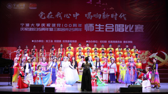 6月2日下午,庆祝建党100周年师生合唱比赛在林杏琴会堂隆重举行,h图书馆 80名师生共同参加。