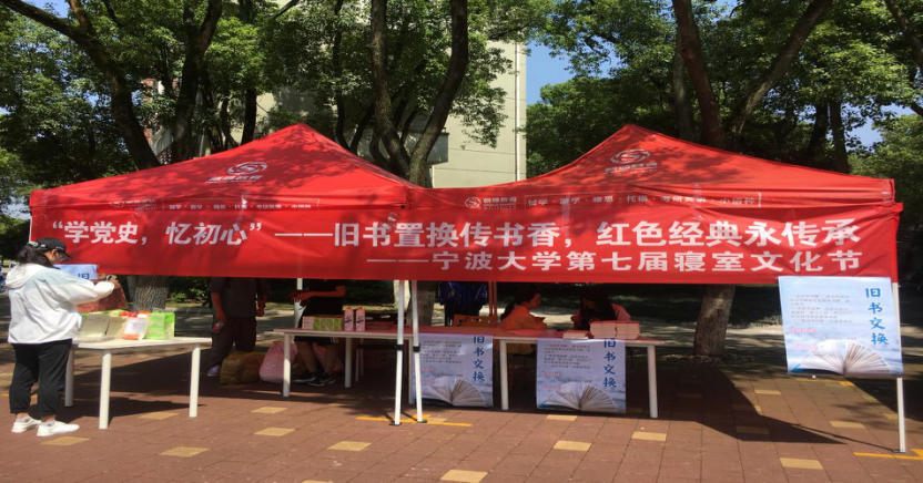 为促进同学们加深对党史的理解,号召大家投身到低碳型、节约型社会的建设中,5月29日-30日,h图书馆 社委会在有思广场开展了"学党史,忆初心"——旧书置换传书香,红色经典永传承为主题的寝室文化节活动。