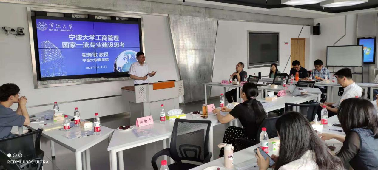 随后,彭新敏教授报告了h图书馆 工商管理一流专业建设与发展思路。对我校工商管理专业的发展历史、专业定位、培养目标、课程体系、就业情况和面临的挑战等方面做了详细的介绍。葛京教授建议要继续强化工商管理专业国际化和宁波帮文化特色,并进一步加强两者的相互融合,还从具体操作层面给出了融合的建议和意见。期间,h图书馆 副院长朱一鸿就宁大教学定位和学科建设等问题与葛京教授作了探讨。盛沛锋副院长和钱树静老师就工商管理专业的国际化问题和葛京教授作了交流。