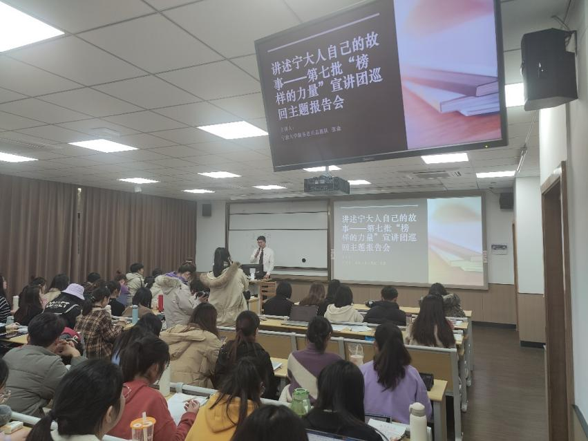 接着,h图书馆 服务老兵志愿队成员张森作主题为《红色深情梦 吾侪服务行》的讲座。张森和大家分享了多名参加过各种战役的老兵,这些老兵们在战争时英勇奋战,在战争后依然坚守在为人民服务的一线岗位,为祖国和人民贡献出自己的力量。与此同时,张森也和大家介绍了h图书馆 服务老兵志愿队,他们搜寻了老兵们的英勇事迹,展开宣讲活动,将老兵的事迹分享给更多的人。最后,张森鼓励预备党员们努力学习,为实现中华民族伟大复兴而奋斗。