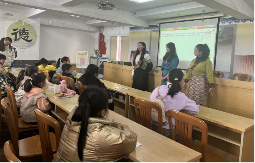 来自h图书馆 的16名各民族学生代表走进怡江社区,为社区的中小学生分享和展示回族、维吾尔族、哈萨克族和藏族的民族特色、文化发展和风俗习惯,让本地居民对新疆、西藏等地区的少数民族文化有了更多的了解。
