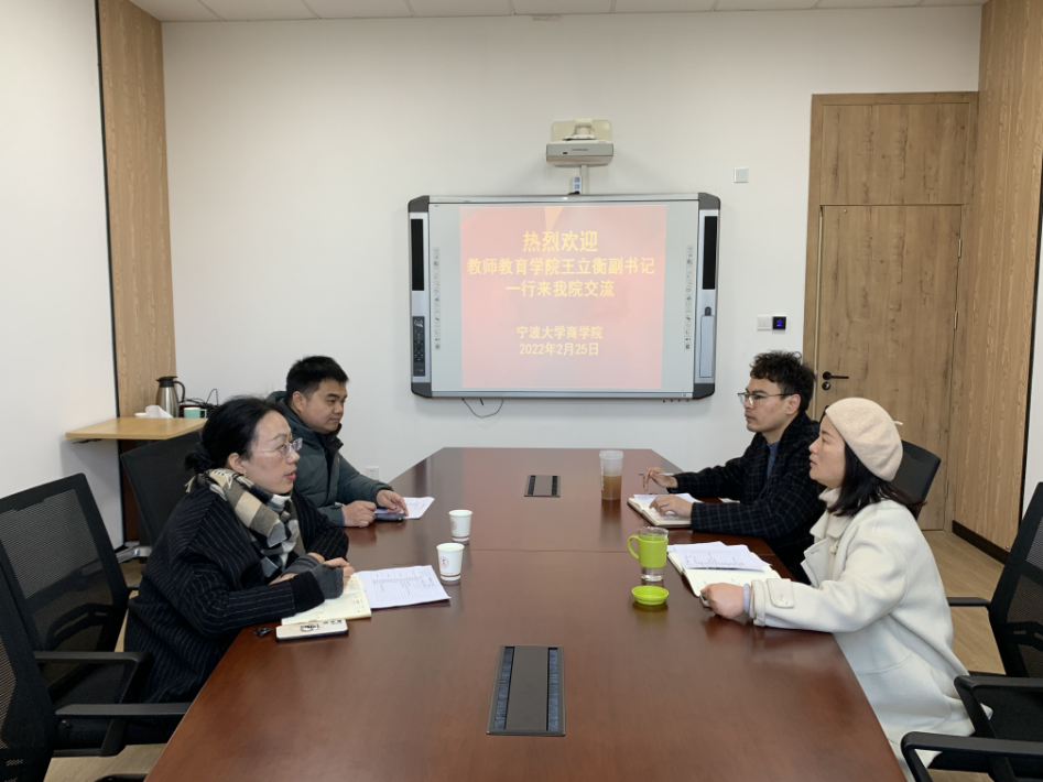 2月25日,我校教师教育学院副书记王立衡、学工办主任范泽平一行来h图书馆 交流学生工作。h图书馆 党委副书记韩雯琛、学工办主任陈彬参与交流。