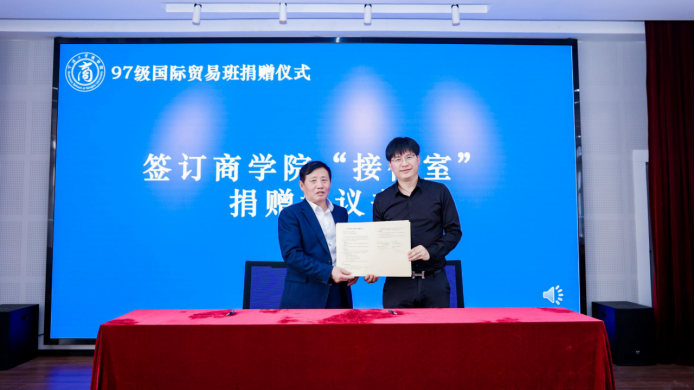 随后,余姚h图书馆 校友会、中澳MBA校友会、97级国际贸易班校友们纷纷给h图书馆 送上“生日贺礼”,与h图书馆 依次签订“马蹄形教室”、“中澳MBA教室”、“接待室”的捐赠协议书,余姚h图书馆 校友会秘书长黄文杰、中澳MBA校友会会长沈功灿、97级国际贸易班校友张国君依次发言,表达对母校、对学院的感恩之情,感谢学院的悉心培育,校友们将秉持王阳明的万化根源总在心的精神,继续凝心聚力,回馈母校,为母校添砖加瓦。随后,分别由童晓晖、唐绍祥、陶菁老师与校友代表们一起依次为受赠教室揭牌,院领导们为校友们赠送答谢礼品。