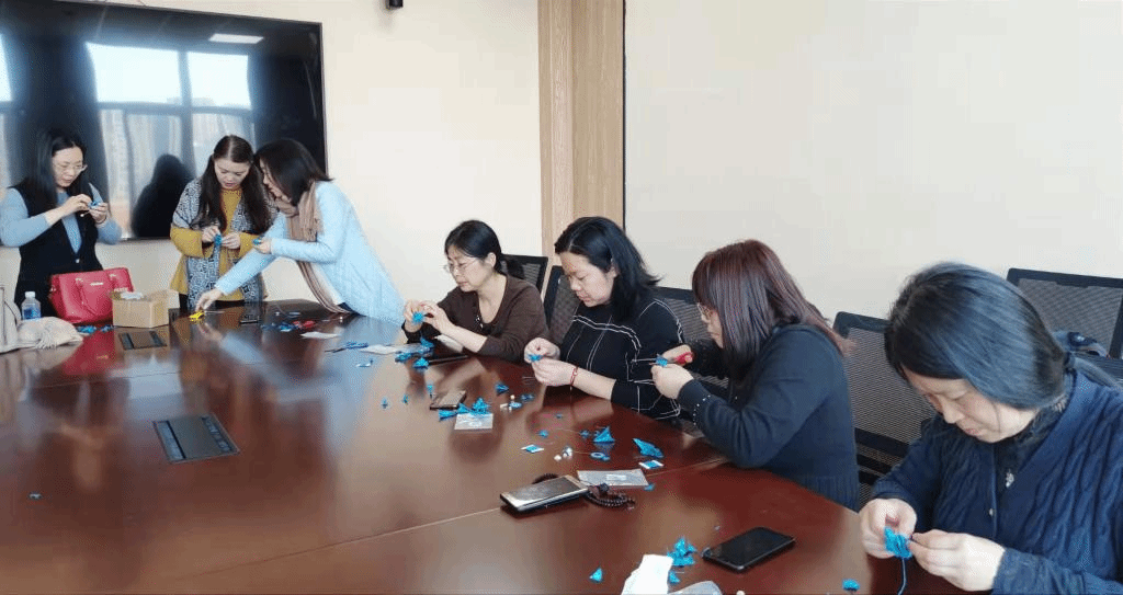 女教工们通过学做樱花胸针,既提升了爱美和动手能力,又丰富了业余生活,同时更增加了同事之间的情谊。